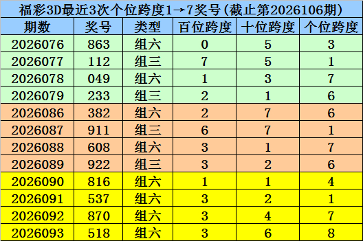 第2026090-第2026092期奖号:816、537、870,其下期奖号为:518,末位号码跨度为3;
